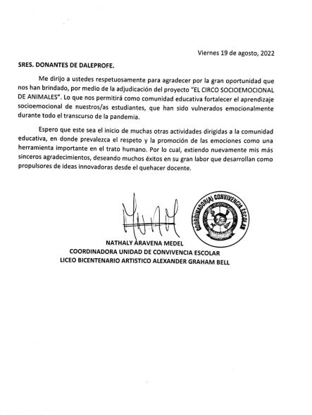 Soy docente de formación en educación fisíca, actualmente me desempeño como encargada de Convivencia Escolar en el establecimiento Liceo Bicentenario de Excelencia Artistíco Alexander Graham Bell de la comuna de Villarrica. Estamos como equipo muy comprometidos en la formación socioemocional de nuestros estudiantes debido a todas las situaciones emergentes que han estado pasando a nivel local y nacional.