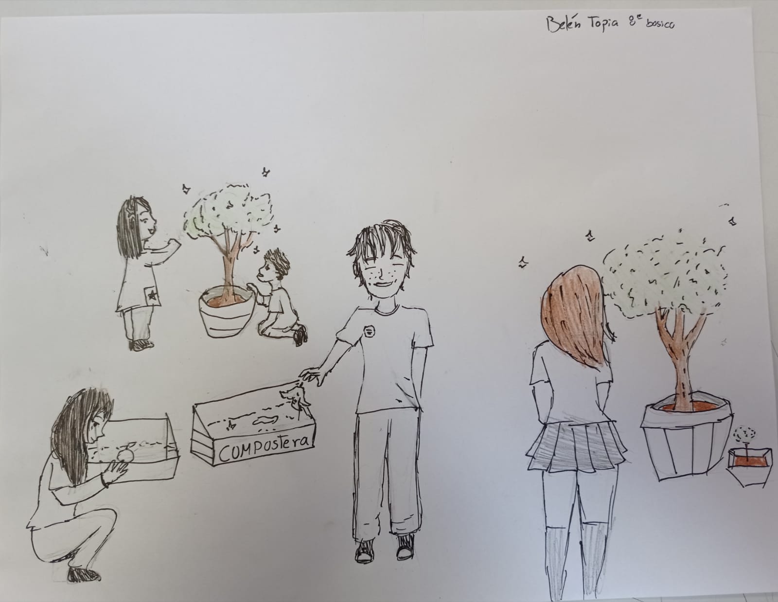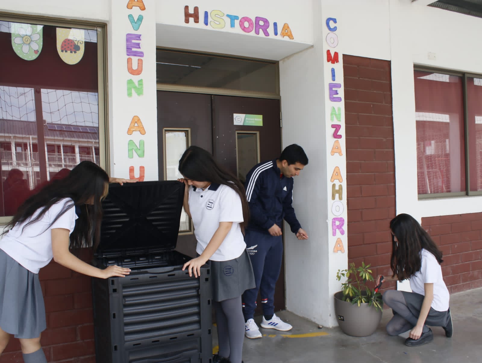 Se ubicarán composteras fuera de cada sala para ser utilizadas por los estudiantes y comunidad educativa en general, de esa manera los residuos orgánicos serán transformados en tierra de gran calidad para plantas y distintos tipos de árboles que servirán como objeto de estudio y formarán parte del paisaje.
